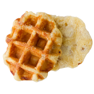 Whether enjoyed on its own, dusted with powdered sugar, topped with fresh fruits and whipped cream, or accompanied with chicken for a savory chicken'n waffle, Ginny's Waffles are a treat filled with irresistible textures and delightful flavors.